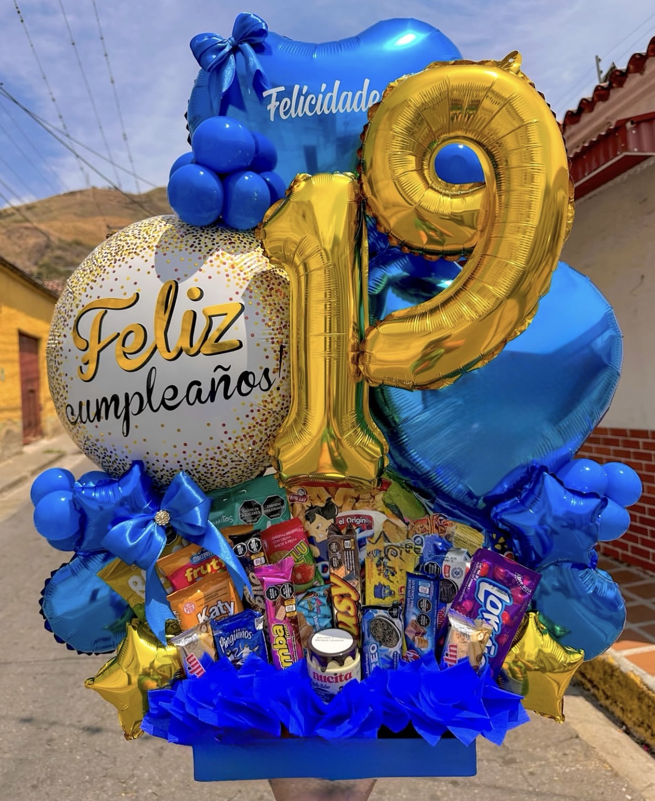 Arreglo de globos y golosinas ideal para cualquier edad✨