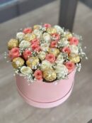 25 rosas entre rosa y blanco con chocolates Ferrero✨